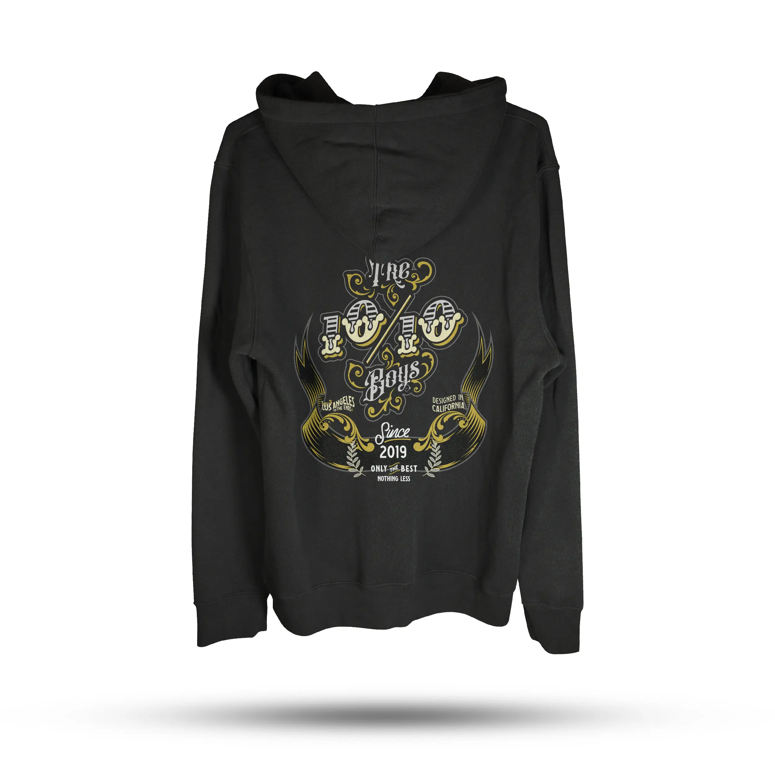 Engineered for comfort, built for presence. The 10/10 Boys Hoody carries the signature Only The Best, Nothing Less ethos in every stitch. Crafted from ultra-soft heavyweight fleece with a structured hood and ribbed cuffs, it’s the kind of piece that feels premium the moment you put it on. Gold-on-black embroidery seals the look with a quiet confidence — a mark of the culture, not the crowd.